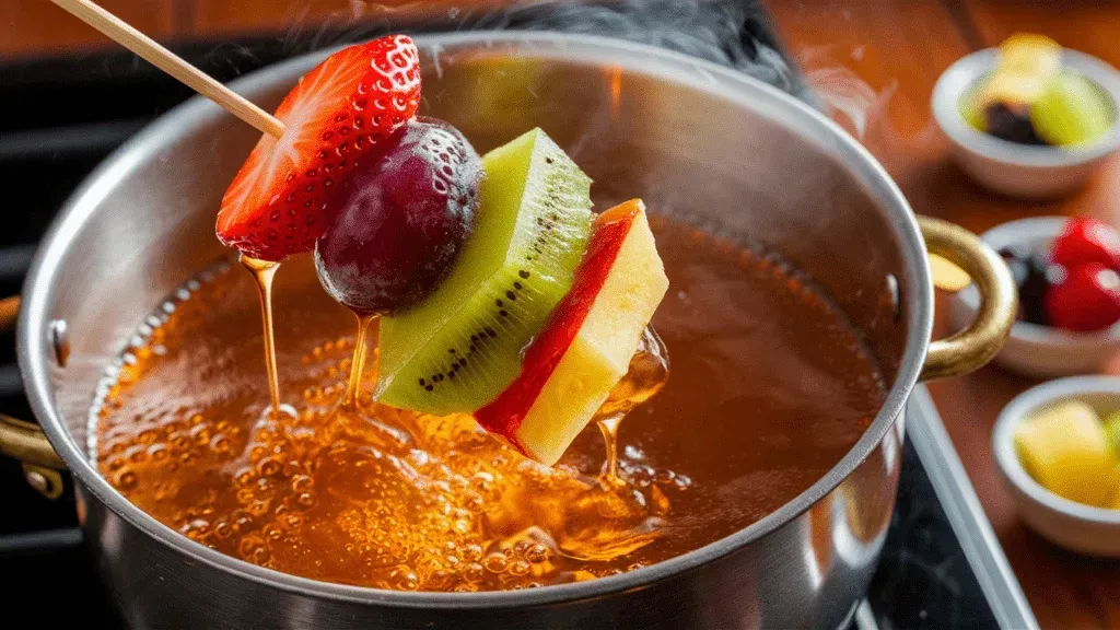 Tanghulu Factory serves fresh fruit skewers coated in a crisp, glass-like sugar shell, made on site for the perfect balance of crunch and natural fruit sweetness.